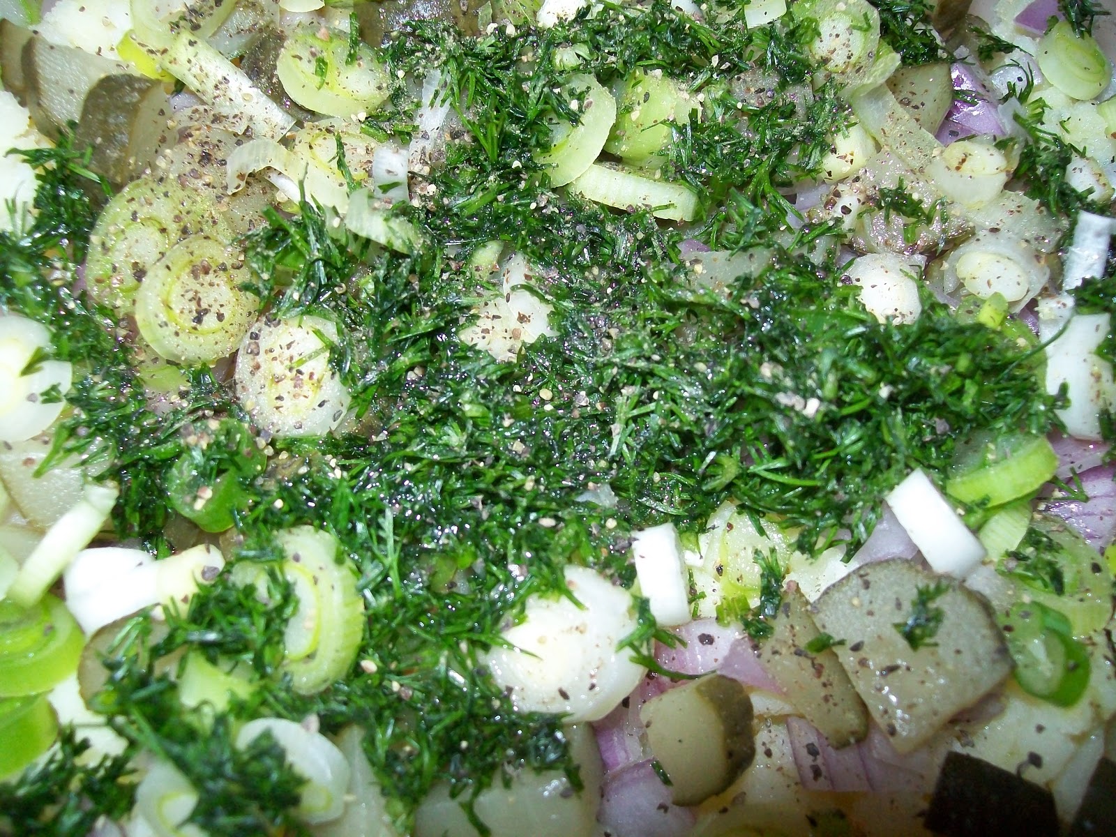 τα φρέσκα κρεμμυδάκια σε "ροδελίτσες" και τον ψιλοκομμένο άνηθο.